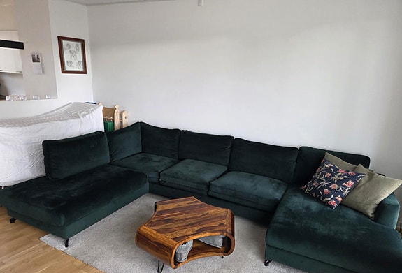 Grøn velour sofa | Til salg