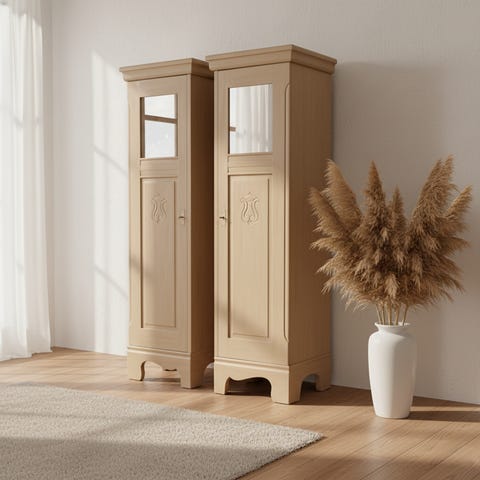 Højskab med glas i træ