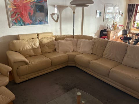 Lædersofa med lænestol og skammel