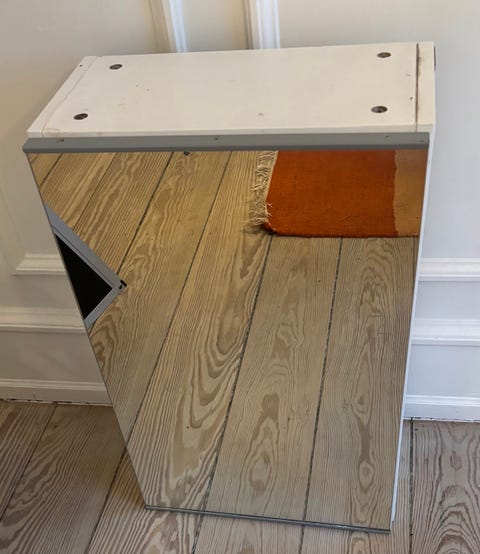 Hvidt vitrine med patina.
