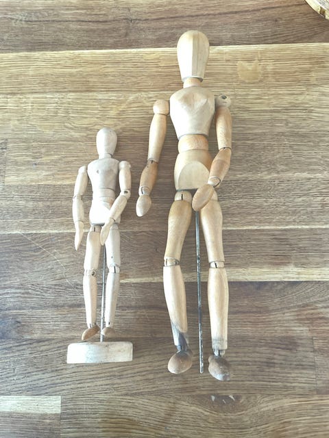 Tegne figur, gammel i to træ sorter