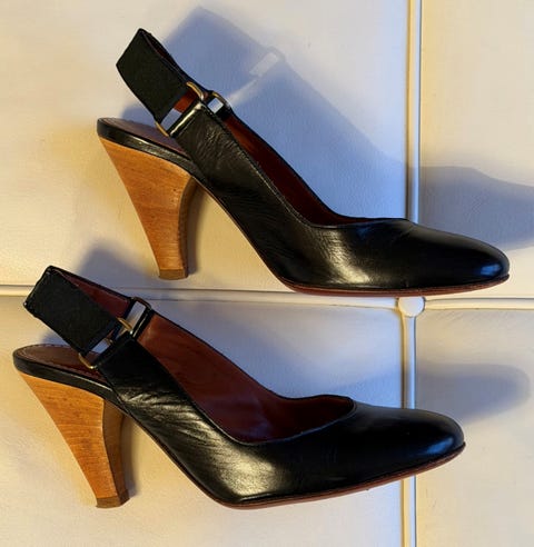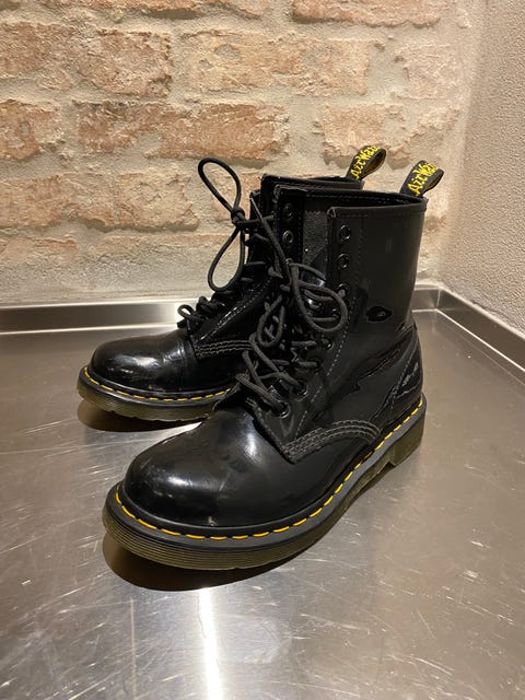 Sort læder stol med skammel