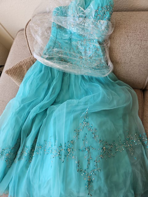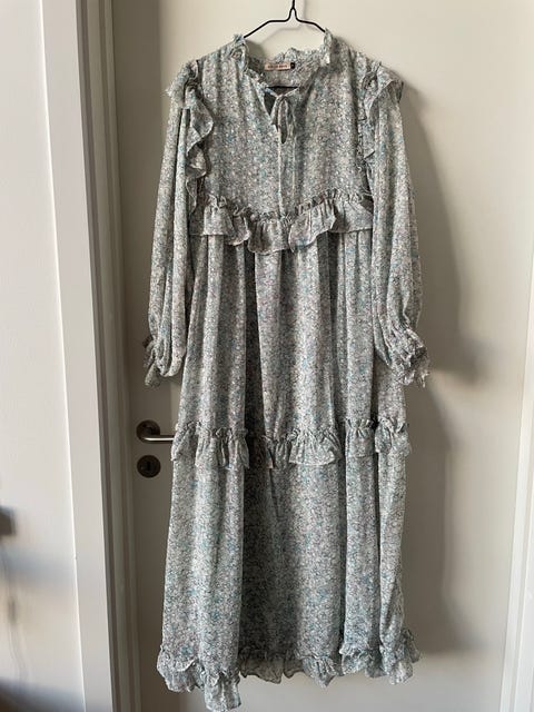 Fantastisk fest kjole 👗 a-formet og falder virkelig smukt. Gl. rosa med glimmer