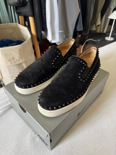 Christian Louboutin 'Atlantic' Louis Flat Spikes High Top Sneakers Blue