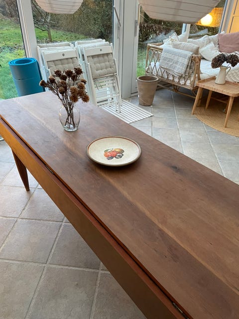 Nyrenoveret spisebord i massivt træ