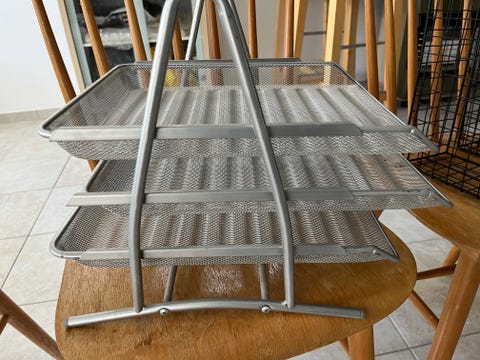Metal stativ med træ hylder