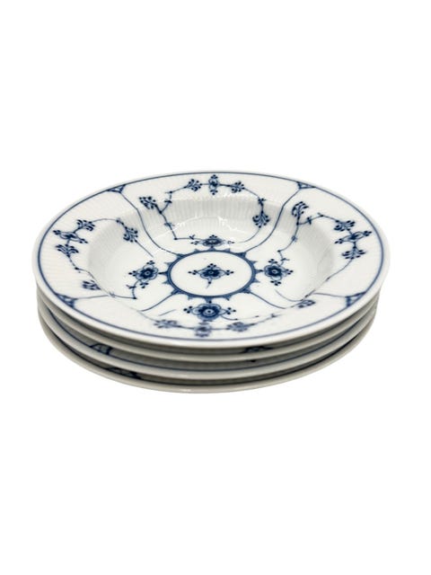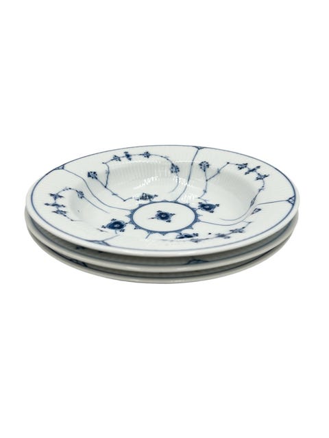 Antik Musselmalet , Riflet dyb tallerken fra Royal Copenhagen. 1/167. 1893-1900.