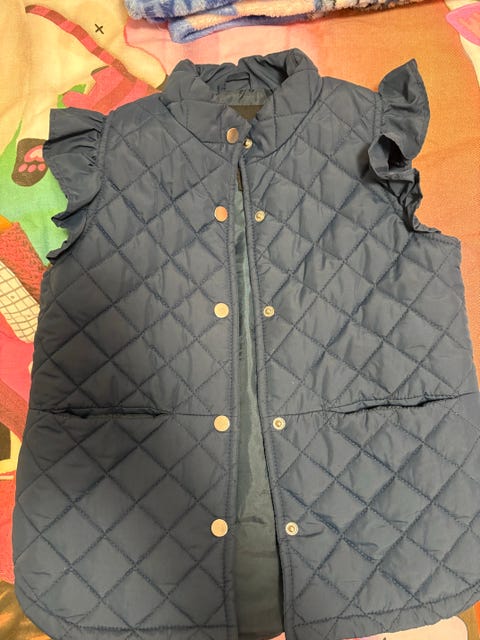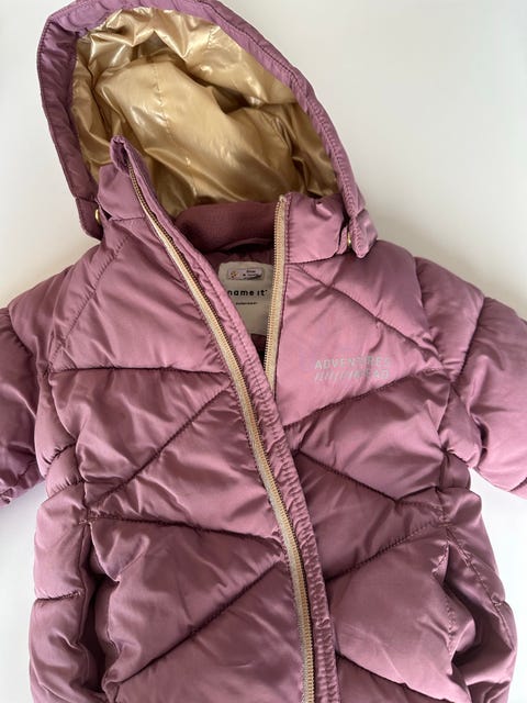 Mørkeblå kjole med rosa blomster fra Name It med stribet cardigan i samme farver