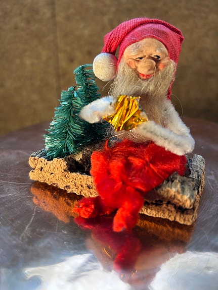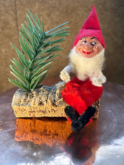 Julestel med nisse på gren.