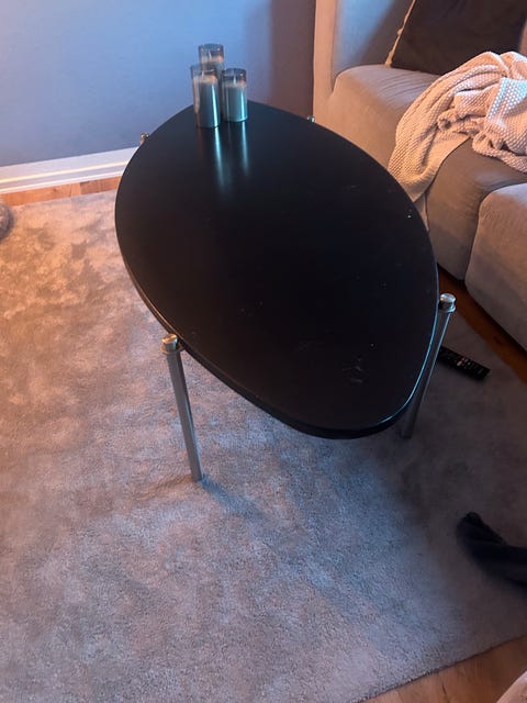 Ovalt mørkt sofabord