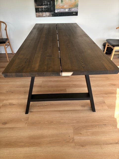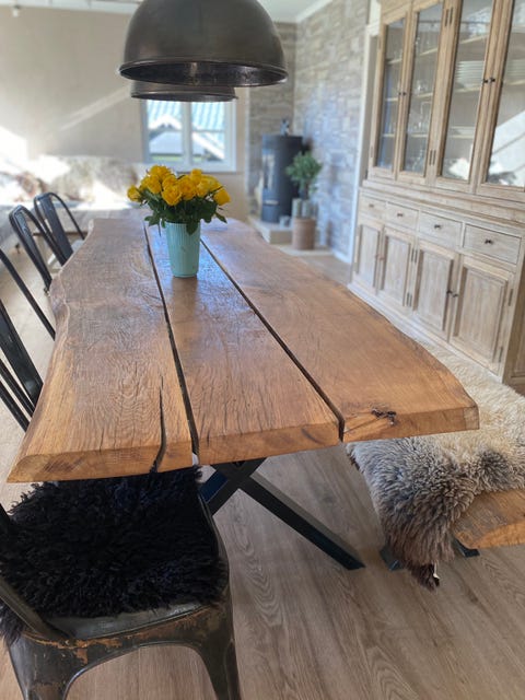 Smukt egetræsspisebord af to planker
