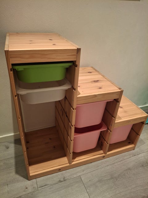 Reol med flytbare moduler