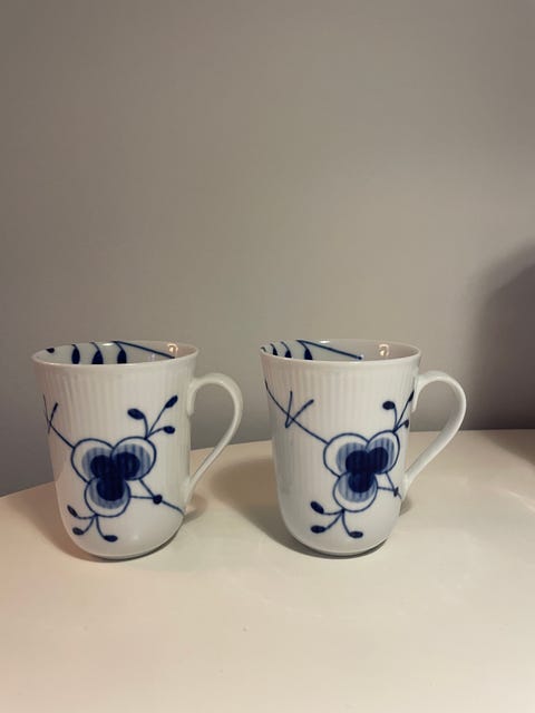 Royal Copenhagen Musselmalet Riflet Tekop og Underkop Sæt Blå og Hvid Porcelæn