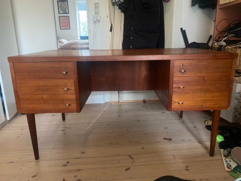 Vintage skrivebord i træ med skuffer