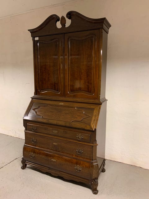 Antik træ sekretær med vitrineskab