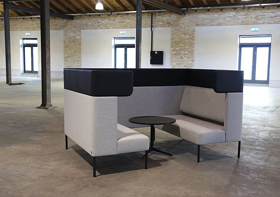 Smuk loungesofa i grå med bord