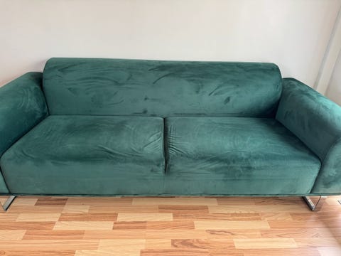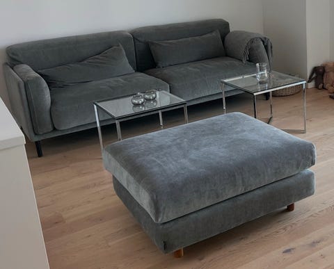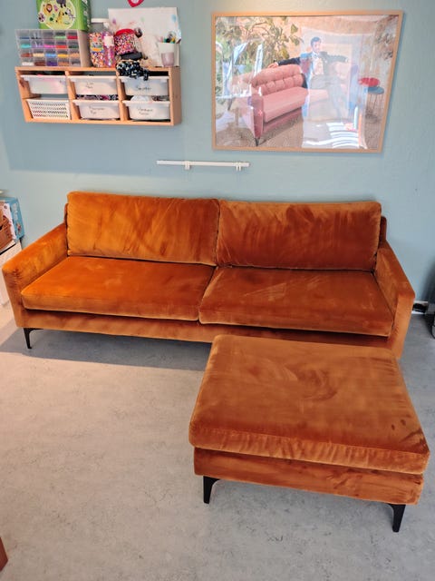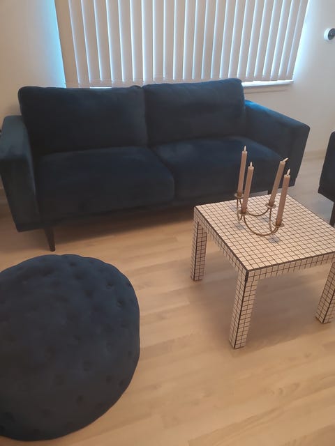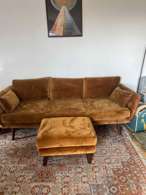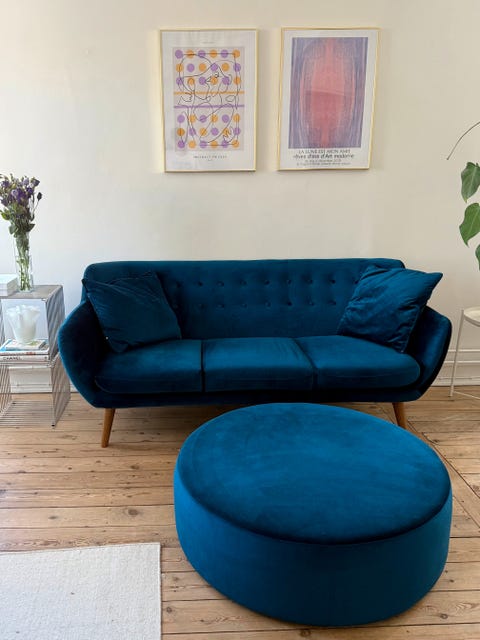 Velour sofa med puf