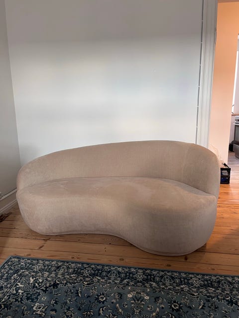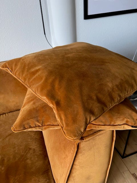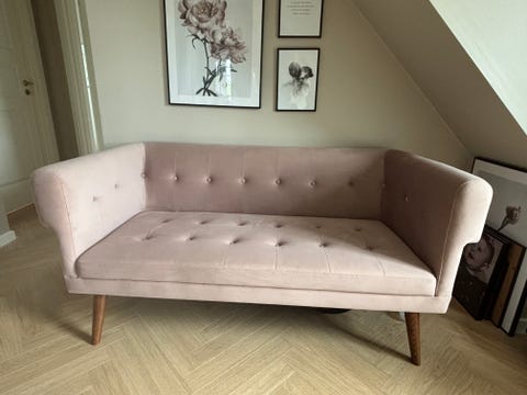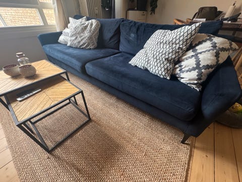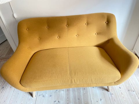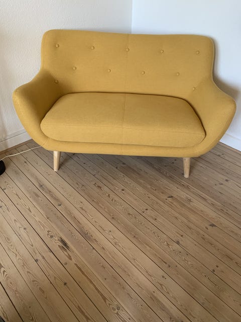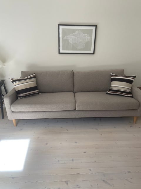 2, 5 personers sofa venstre Nypris 9000kr incl 2 pynte puder, sælges for 3700kr
