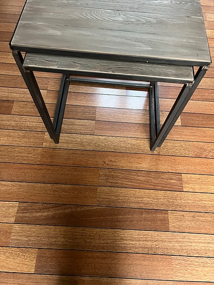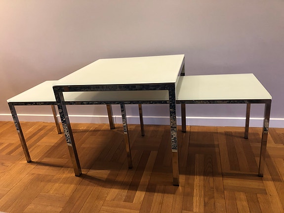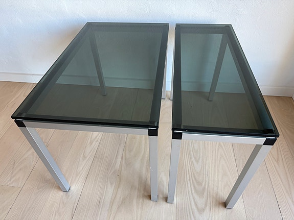 To sofaborde i glas og metal