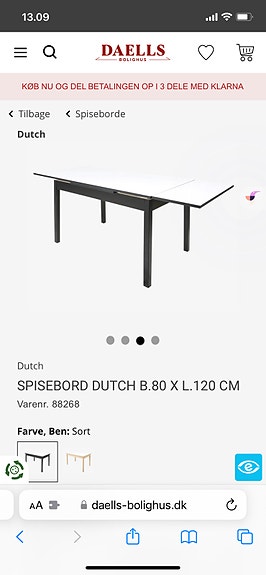 Spisebord med hollandsk udtræk | Til salg