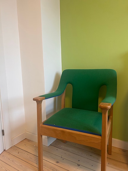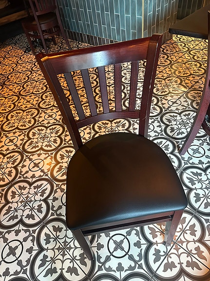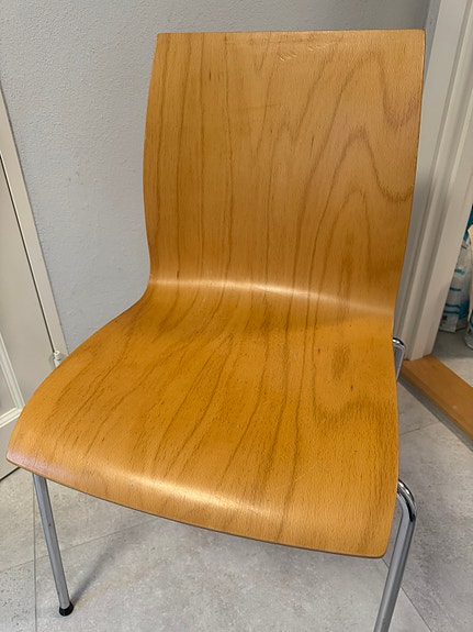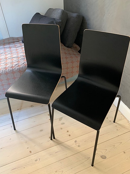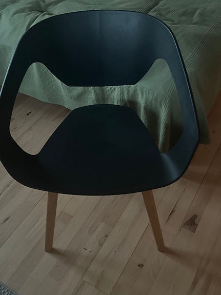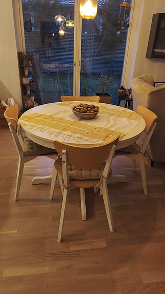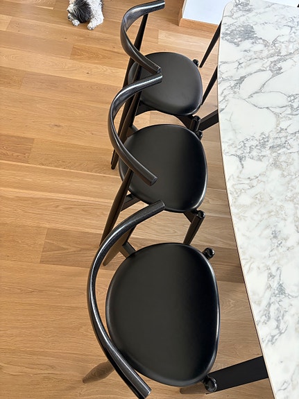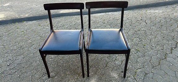 Fritz Hansen Arne Jacobsen stol træ med sort lædder hyndesæde og rund spisebord
