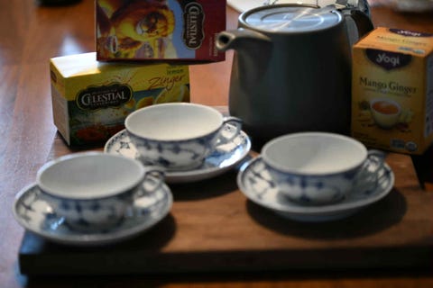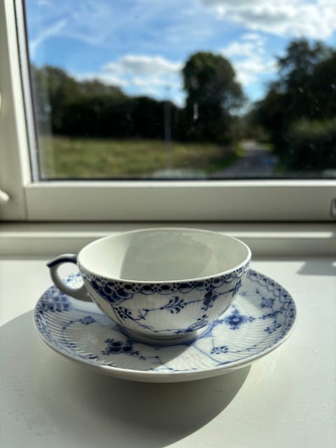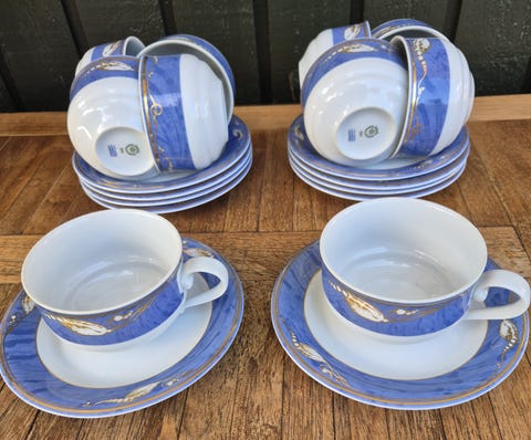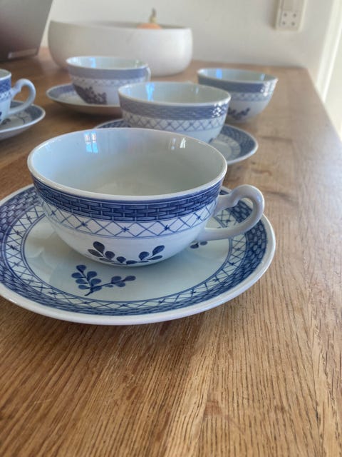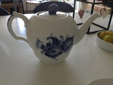 Royal Copenhagen Tekande og Tekop med Underkop i Porcelæn med Blå Blomsterdekor