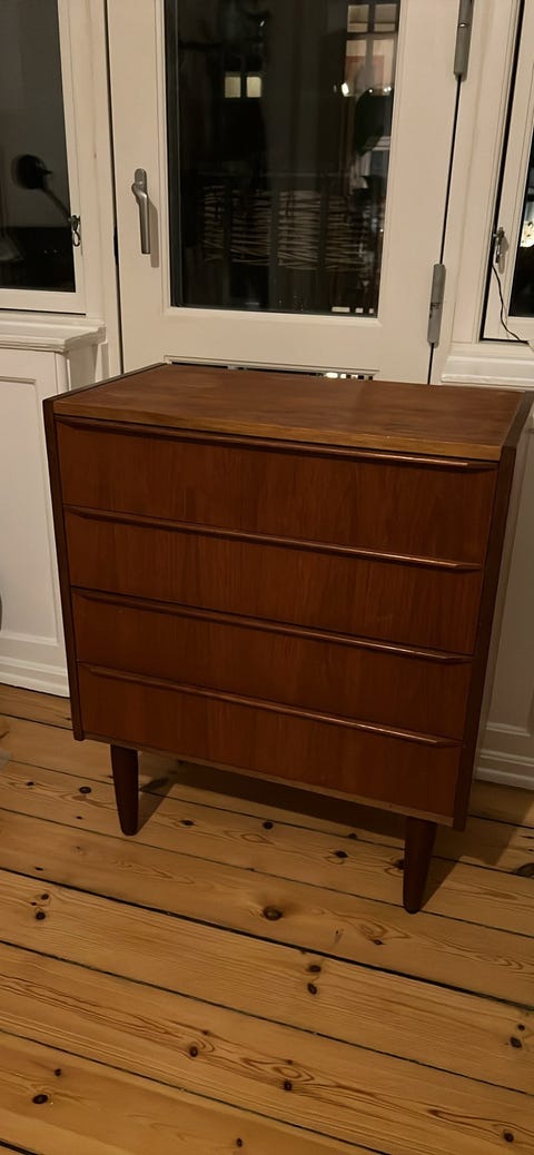 Teak kommode med 4 skuffer