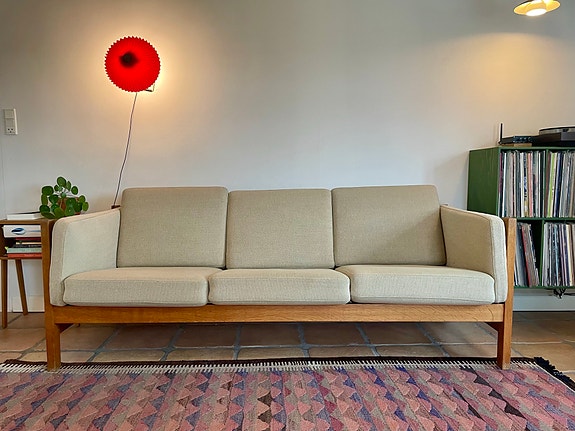 Hans J. Wegner Ge-290/3 Pers.Sofa i mørkegrå Hallingdal 180 uld, stel Egetræ.