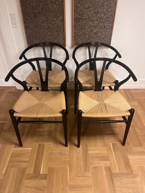 Sæt med 6 Hans Wegner Y-stole CH24 i ask