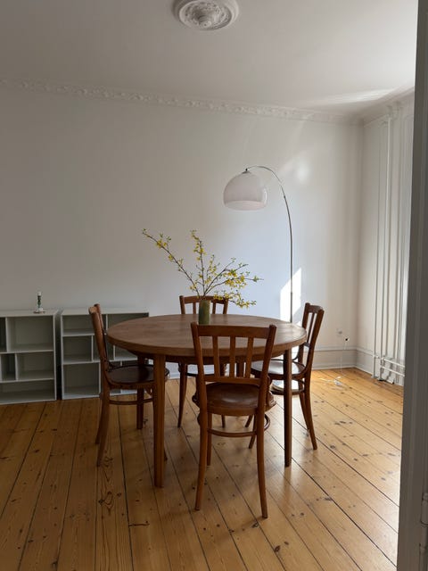 Rundt spisebord i egetræ med udtræk
