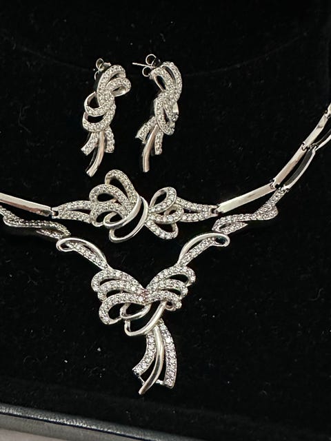 Et smykkesæt inkluderer ofte en halskæde og øreringe, og muligvis også et armbånd eller en ring. Delene i et smykkesæt passer naturligvis sammen og giver dit outfit et komplet look. Tjek DBA's 1.969 annonce(r) og se, om du kan finde det perfekte smykkesæt.