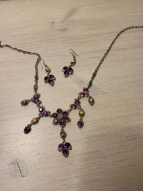 Et smykkesæt inkluderer ofte en halskæde og øreringe, og muligvis også et armbånd eller en ring. Delene i et smykkesæt passer naturligvis sammen og giver dit outfit et komplet look. Tjek DBA's 2.085 annonce(r) og se, om du kan finde det perfekte smykkesæt.