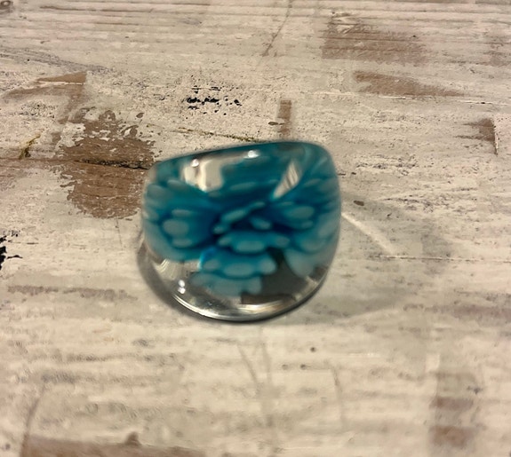 Ring med tyrkis blomst i