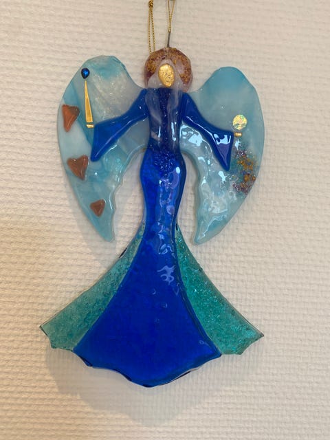 Glasengel vægophæng blå