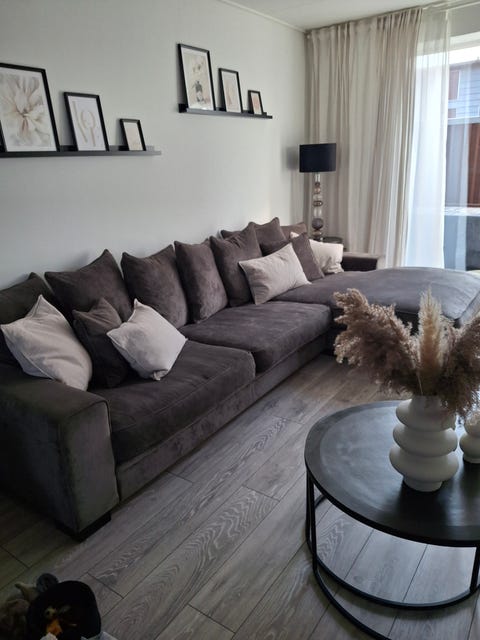 Sofa med puff og puder