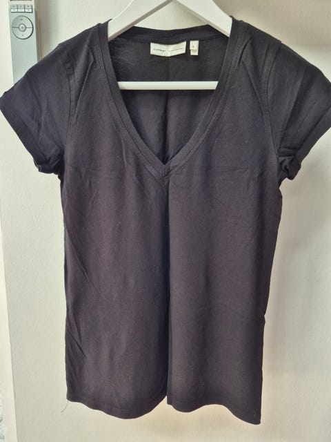En t-shirt er grundlaget for mange outfits. Den er velegnet som undertrøje, under en jakke eller uldjakke, til sport eller som en top om sommeren. På de nordlige breddegrader er en langærmet t-shirt et praktisk grundlag for et outfit i mange sæsoner. En t-shirt af høj kvalitet kan være en god indvestering, og du kan få mange t-shirts fra danske eller udenlandske klassiske mærker billigere brugt. Når du kigger på annonce(r), bør du se nøje på produktets størrelse og tilstand.