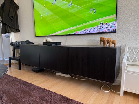 TV-bord i massiv egetræ med jern ben