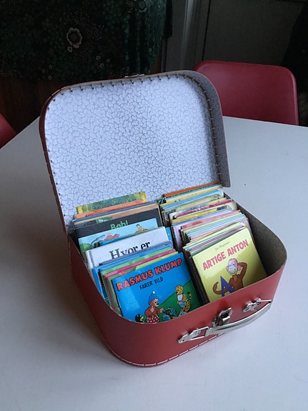 Kuffert med 52 små bøger
