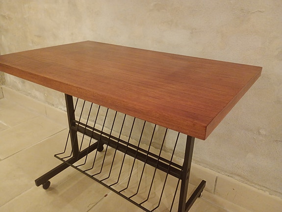 Teak bord med magasinholder