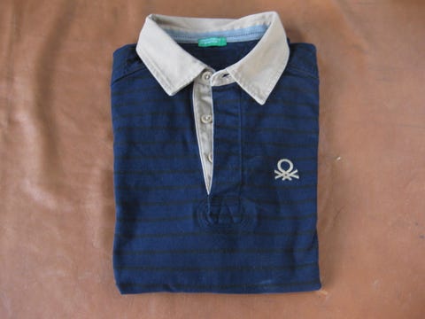 Fred Perry polo t-shirt, str. M, lyseblå m.mørkeblå/hvide striber på krave/ærmer