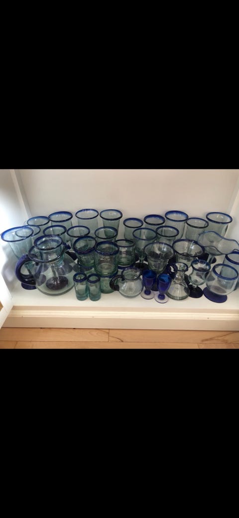 Mundblæste glas m/blå kant