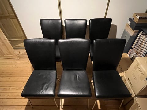 Spisestole sort læder børstet stål