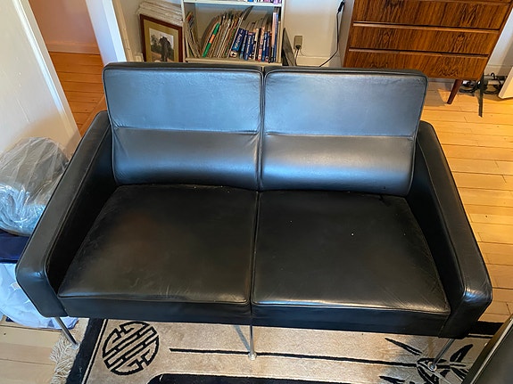 Sort lædersofa med kromben