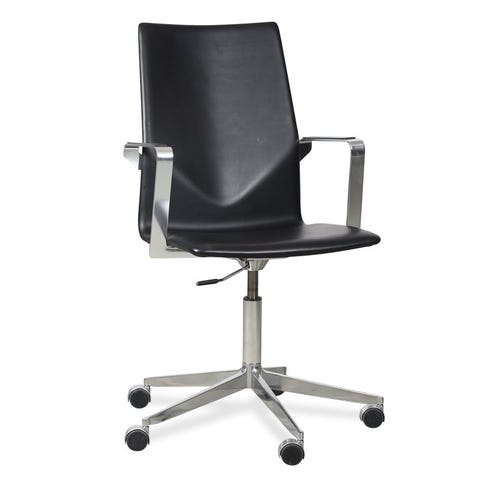 2 syverstole med armlæn betrukket med sort semianilinlæder3207Rigtig flot stand.