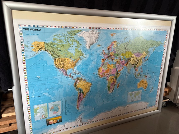 Stort verdenskort i ramme