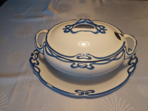 Blå Olga oval skål