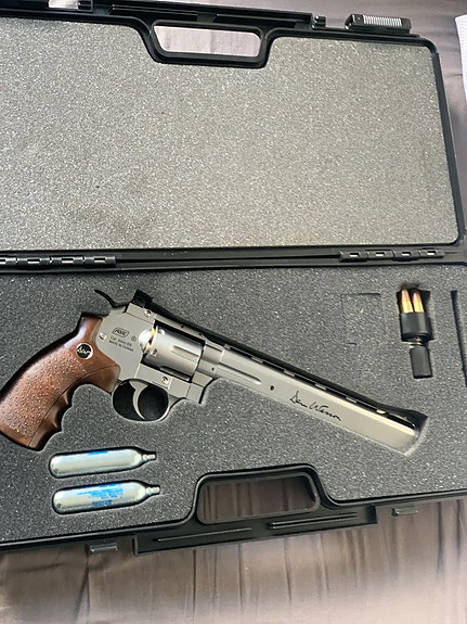 Revolver Dan Wison med kuffert