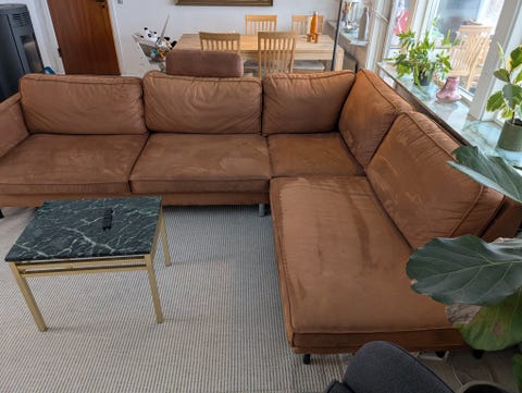 Hjørnesofa, velour, 5 pers.