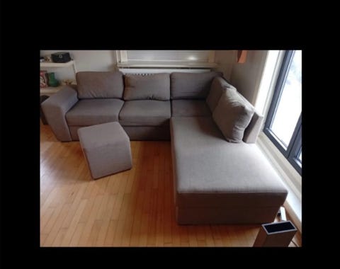 Grå lædersofa med puff