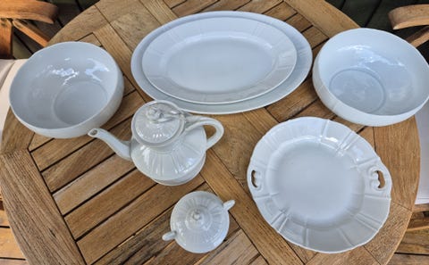 Fad - tallerken - skål - Kaffekande - sukkerskål - B & G Offenbach uden guldkant
